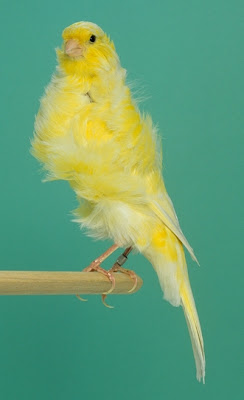 Se toleran las plumas levantadas que presenta el canario amarillo en la nuca, en realidad están muy poco levantadas. Las plumas están bien colocadas.